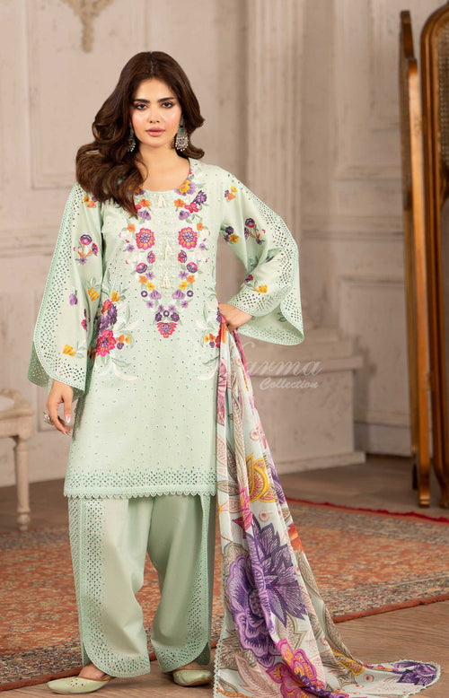 Original karma collection 3pc outfit with embroidery farshi Shalwar ANTIQUE PEARL KC-1556