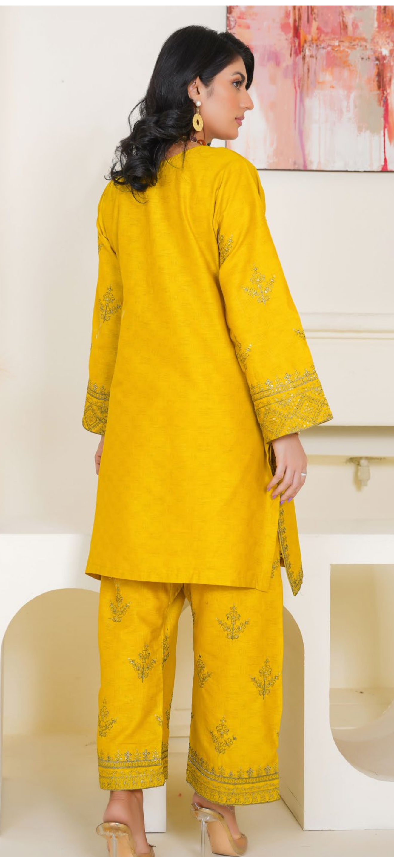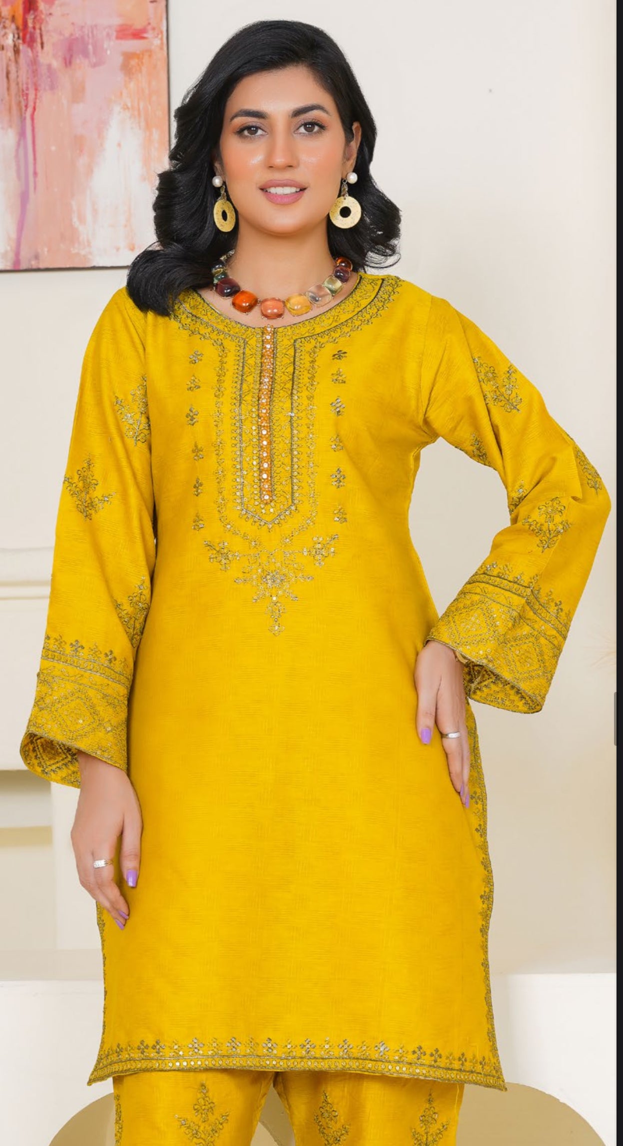 2pc mustard suit with embroidery