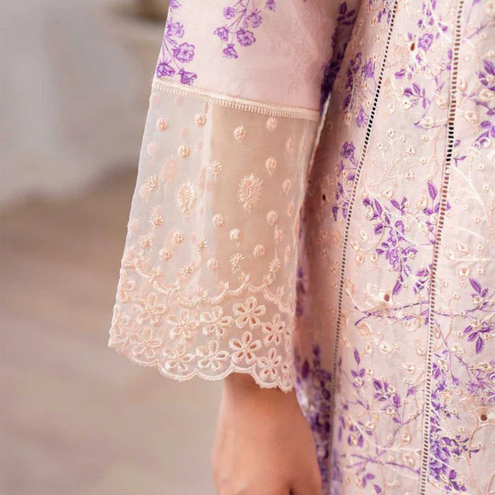 Shirt: Chikankari Shirt with Patch on neckline and sleeves and border of the kameez