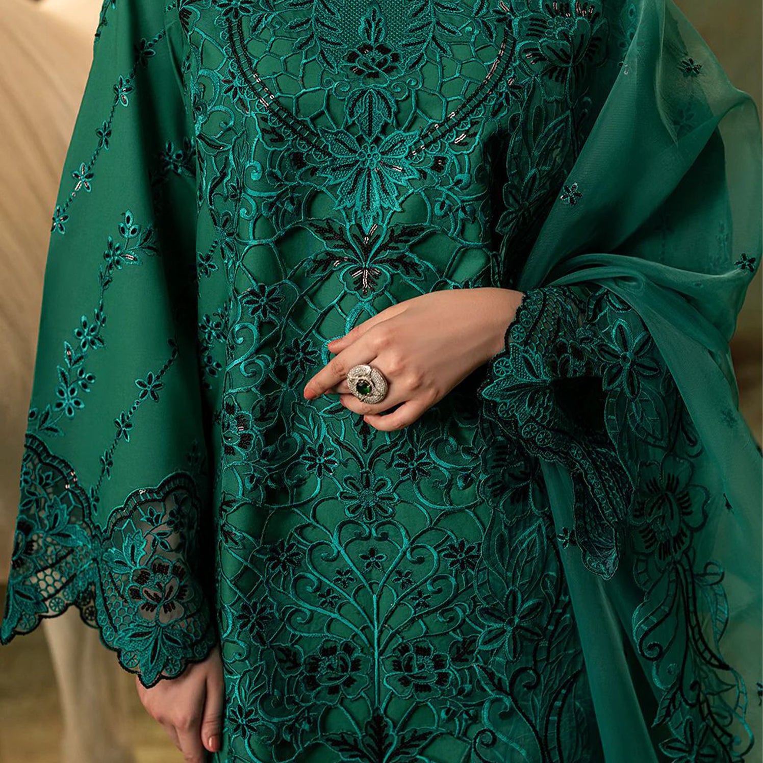 Shirt: Chikankari Shirt with Patch on neckline and sleeves and border of the kameez Dupatta: Printed Silk Dupatta...