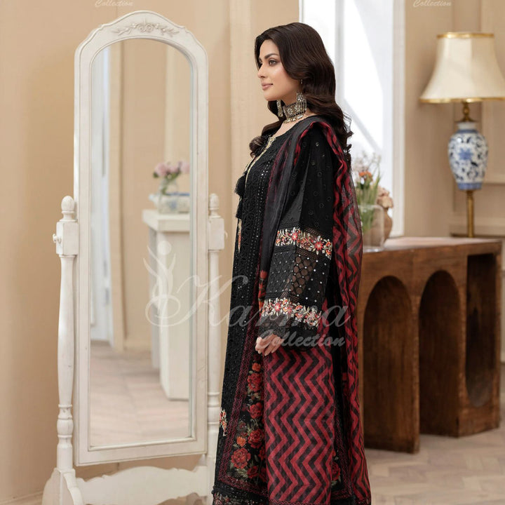 Printed baby pink suit with a chiffon scarf Very nice 😊
