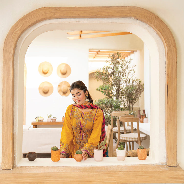 Short Self Print Shirt with Tilla Embroidery
